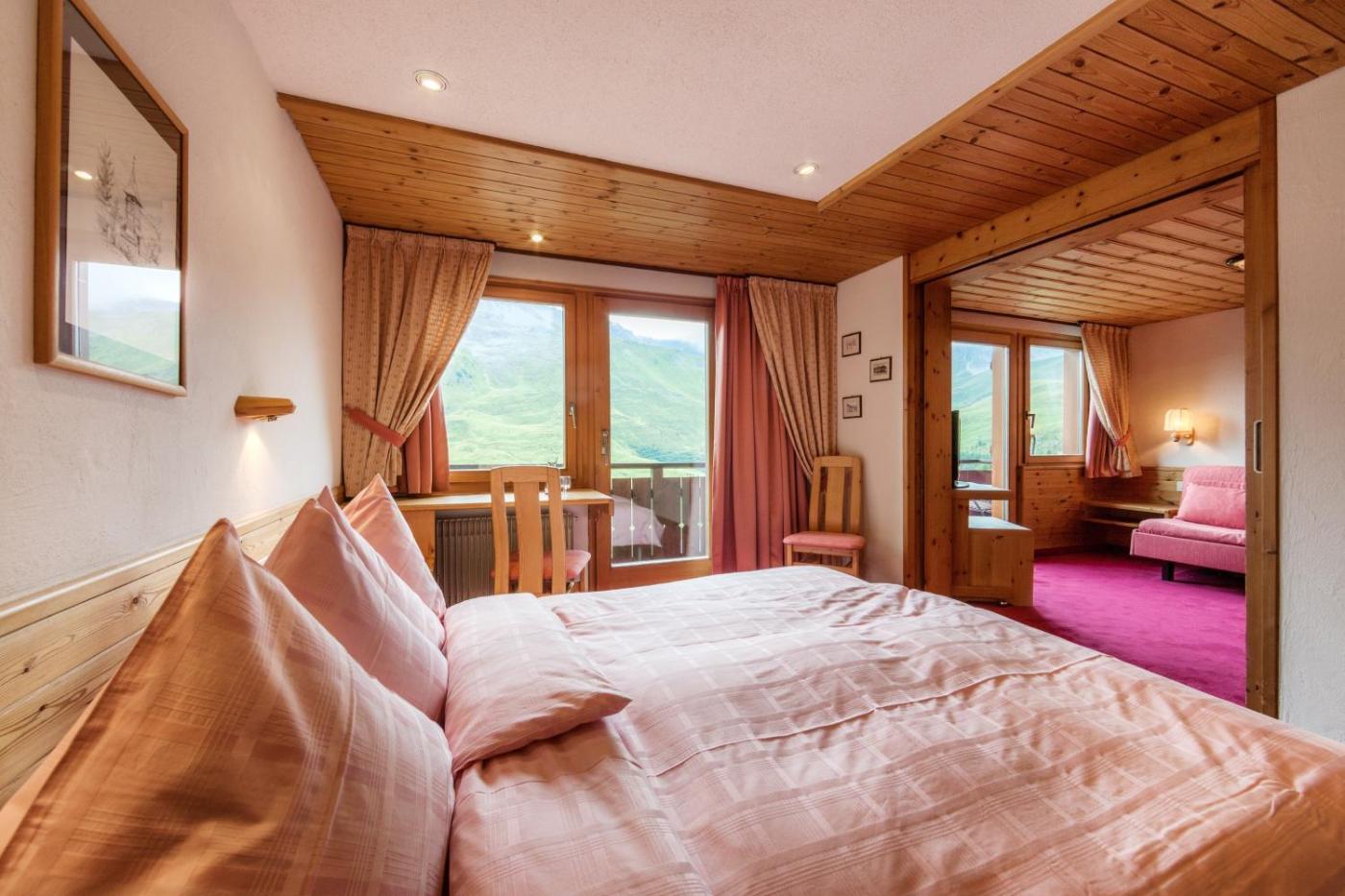 Superior Family Room. These rooms face north and have views of the surrounding mountain landscape. They come with 1 double bed and one bunk bed (suitable for children up to 12 years), a bathroom and satellite TV.