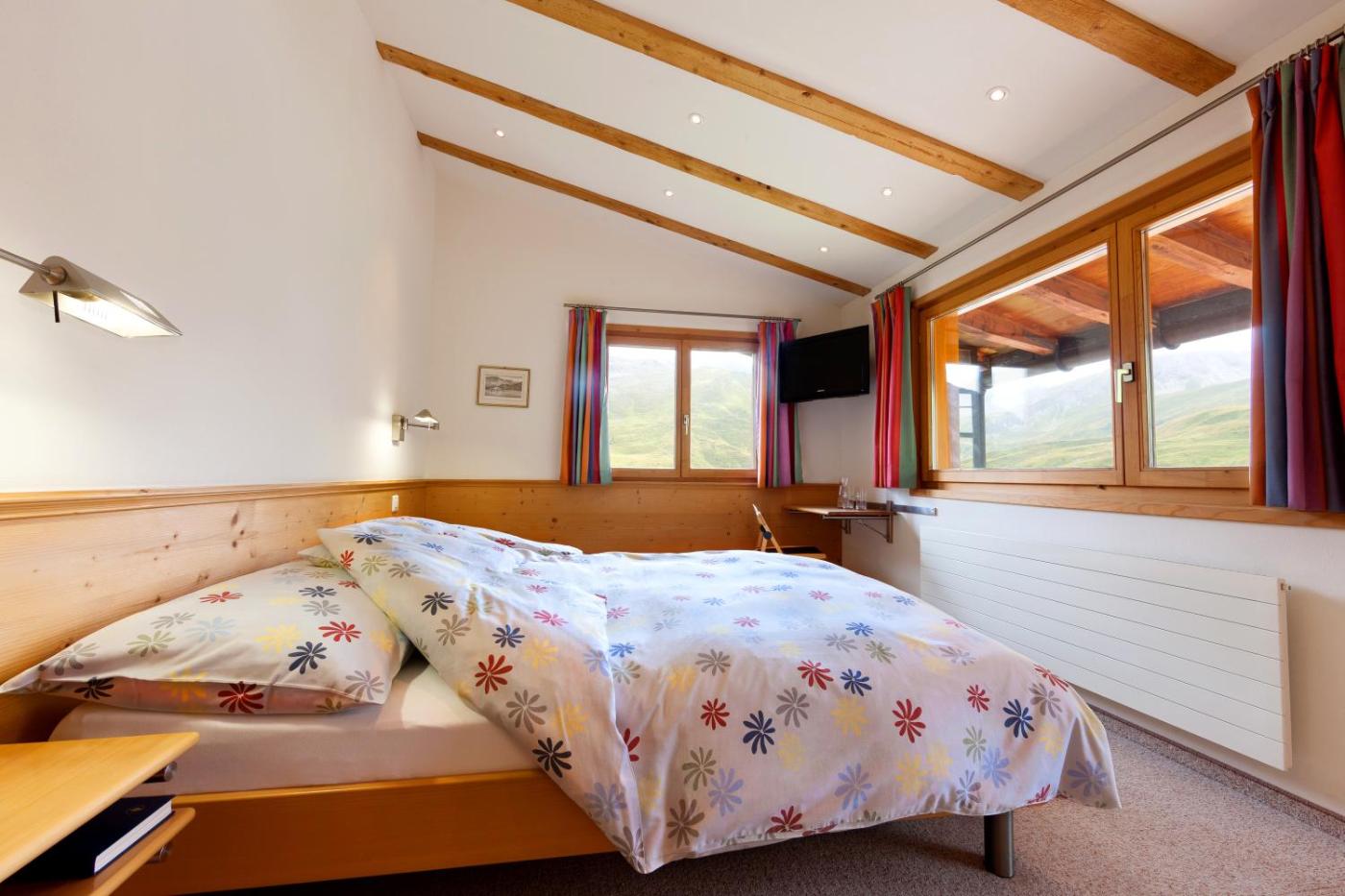 Standard Family Room. These rooms face north and have views of the surrounding mountain landscape. They come with 2 double beds, a bathroom and satellite TV. ;